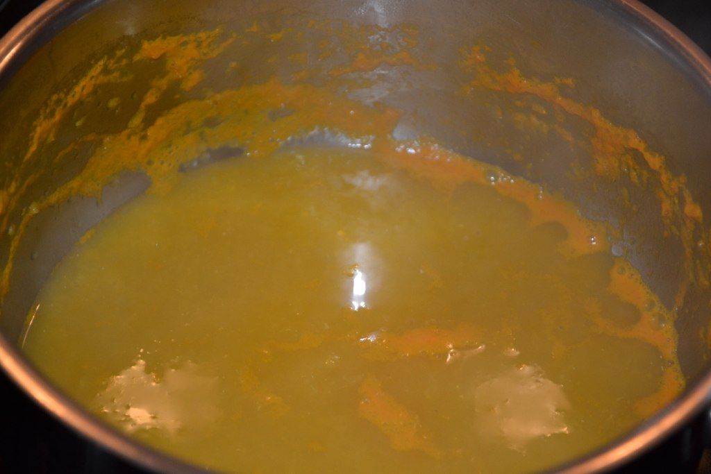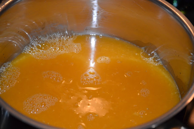 Poner al fuego el zumo de mandarina y reducir a la mitad.