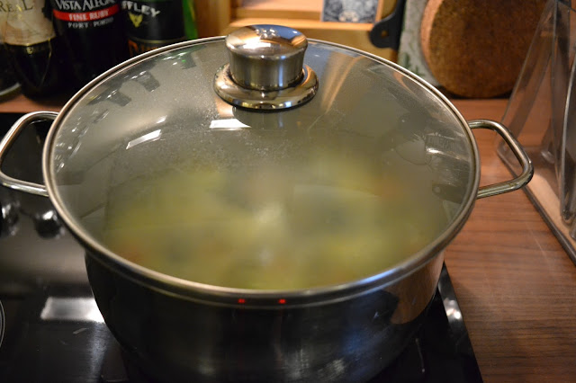 Cuando rompe a hervir, tapar y cocer a fuego medio-bajo 20 minutos.