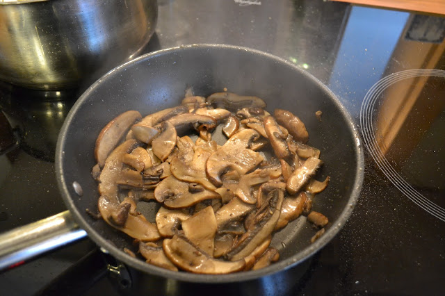 En la misma sartén, otro poco de aceite y poner el champiñón.