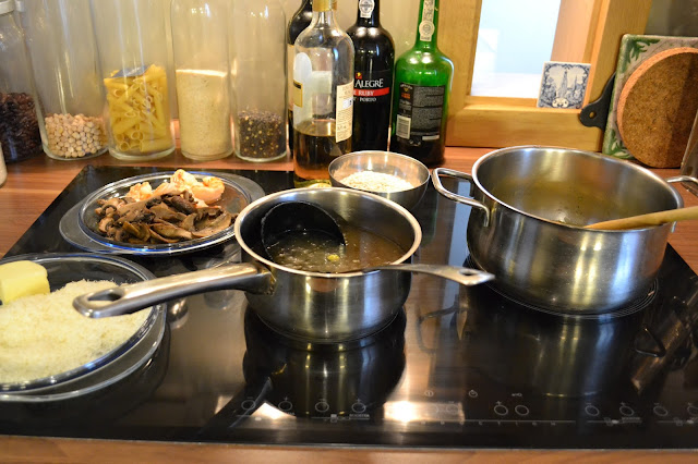 Ya tienes todo listo, a partir de aqui cuenta que necesitas 20 minutos para acabar y empezar a comer. El risotto, como la pasta, no espera, hay que comerlo inmediatamente.