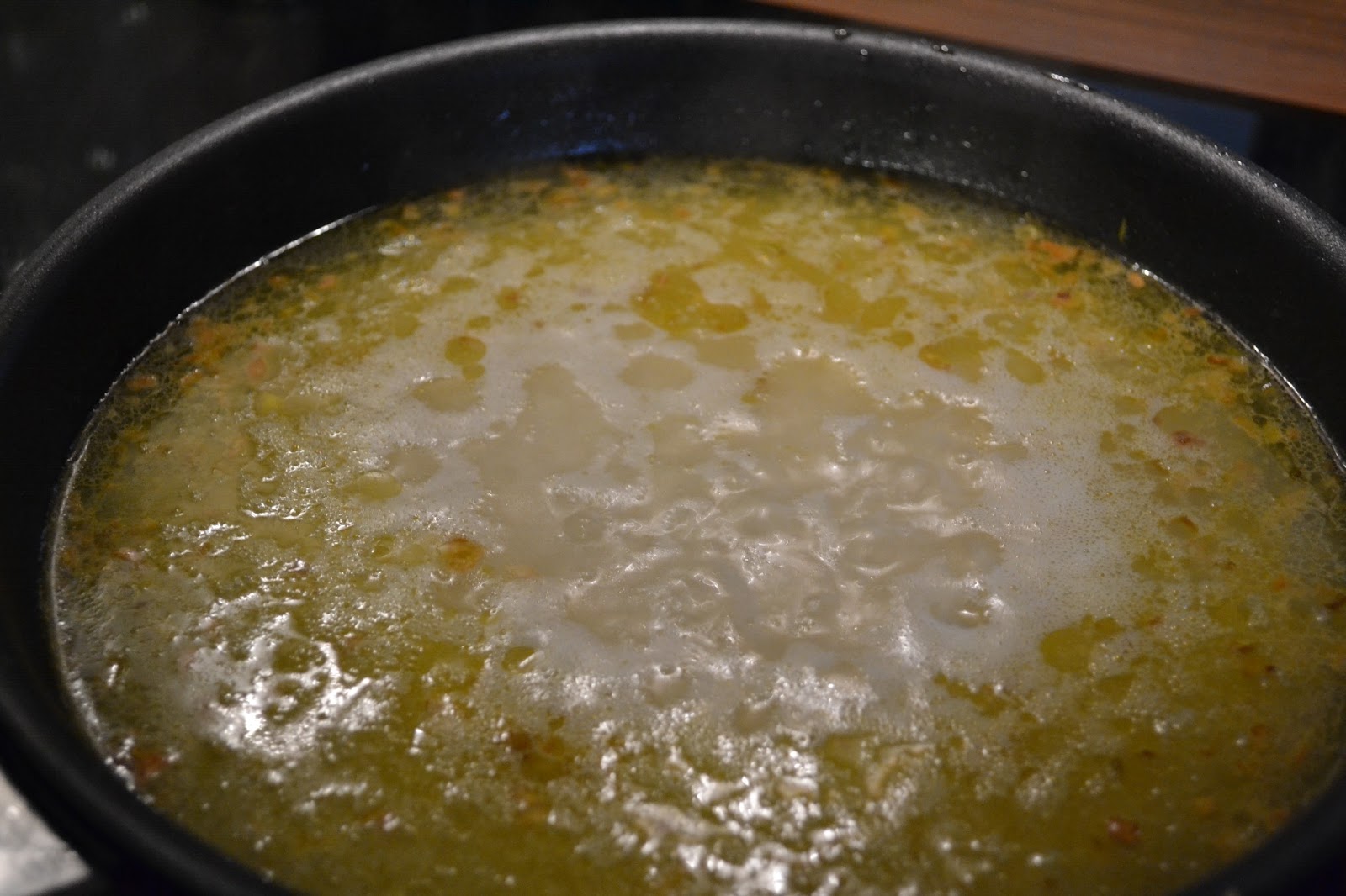 Cuando empieza a hervir con fuerza, bajar el fuego a medio-bajo.