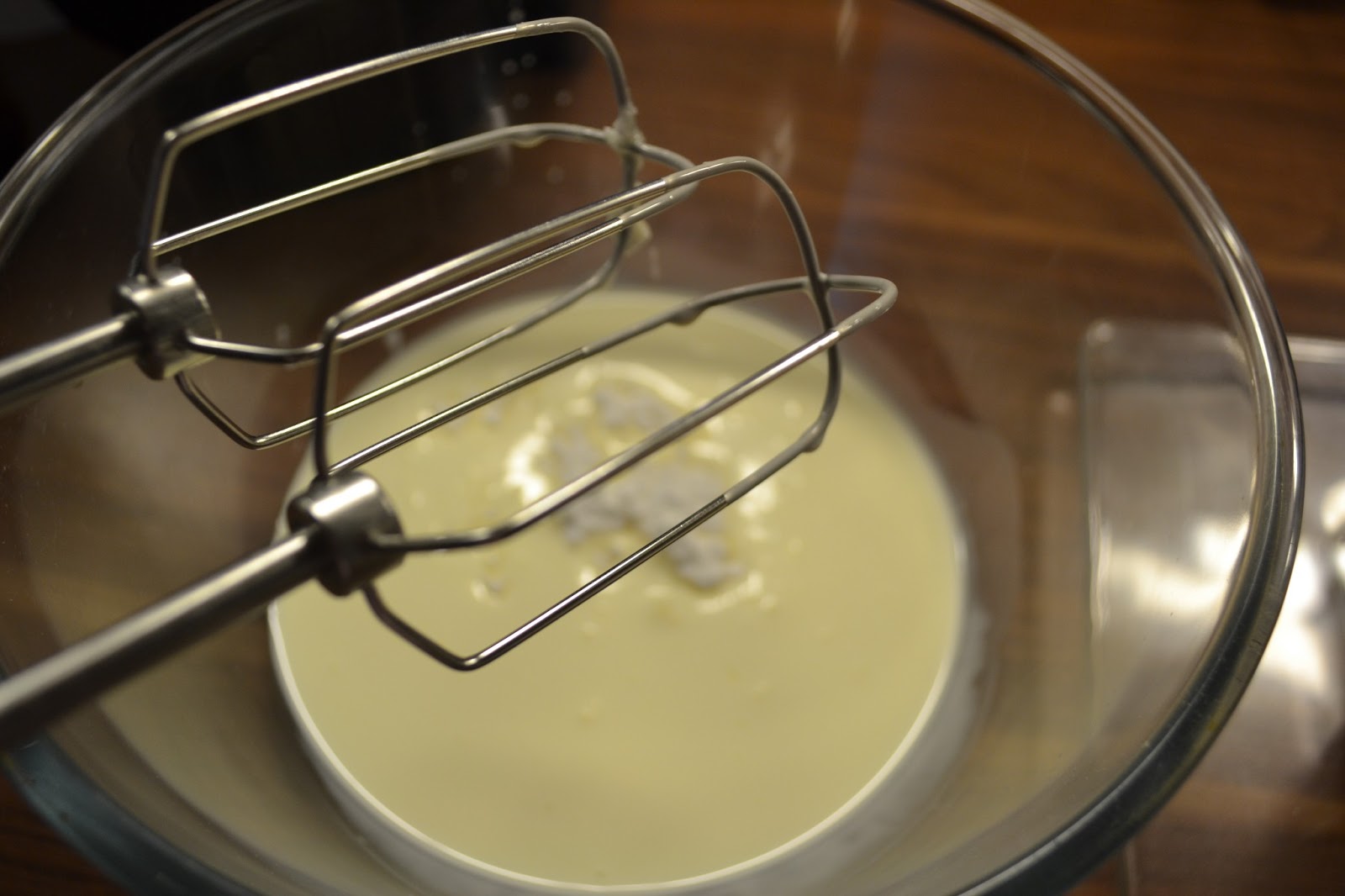 Montar la nata hasta que queden las marcas de las varillas. En cuanto las veas, para, si no, se te hará mantequilla.