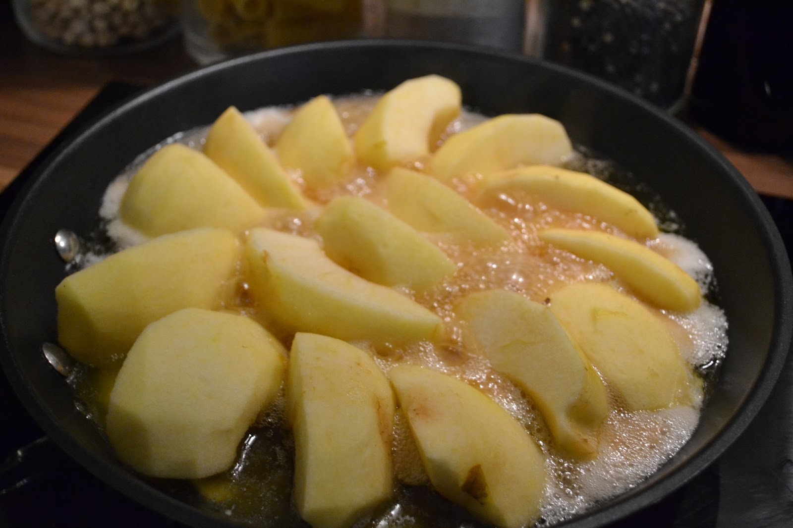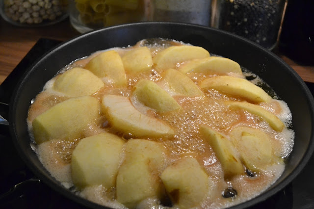 Deliciosa. La he hecho hoy. Palo, se me ha quedado un poco chiclosa, quizá porque la he dejado demasiado. Tengo Smeg de gas, y al mínimo calienta mucho. Pero estaba buebnísima. He puesto helado de vainilla encima.
