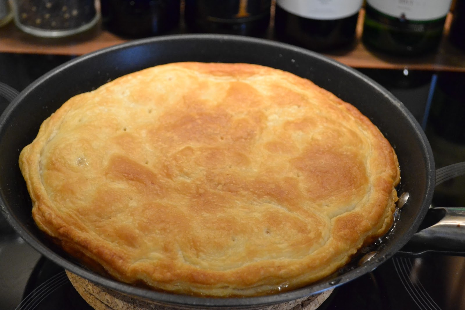 Utilizando una tapa o lo que tengas de la medida de la sartén corta un disco de masa de hojaldre. Precalienta el horno a 180º.