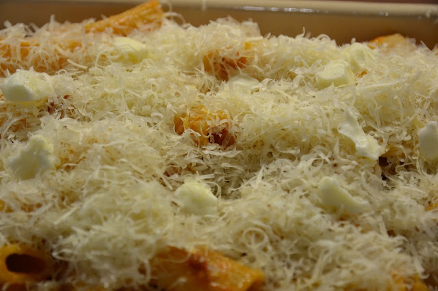Ponlo en una fuente de horno y espolvorea con el queso rallado y unos daditos de mantequilla.