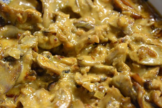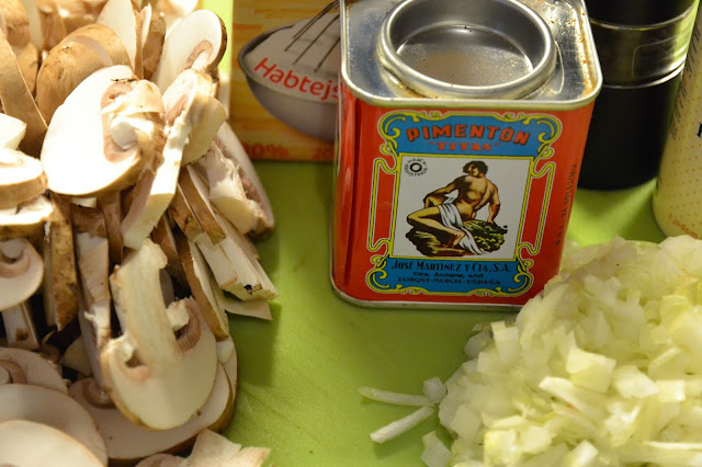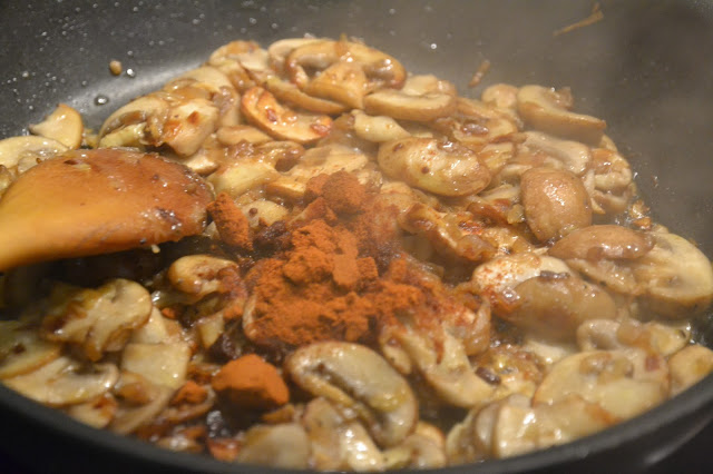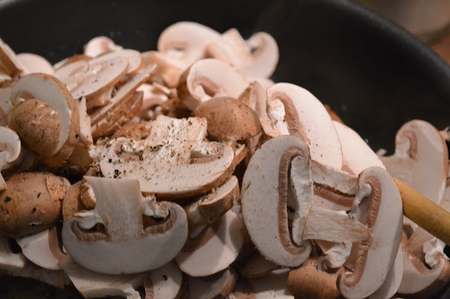 Añade el champiñón, la sal y la pimienta.