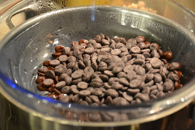 Pon al baño maría (un bol encima de una cazuela con agua) a fuego medio el chocolate para que se derrita.