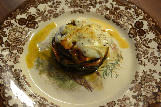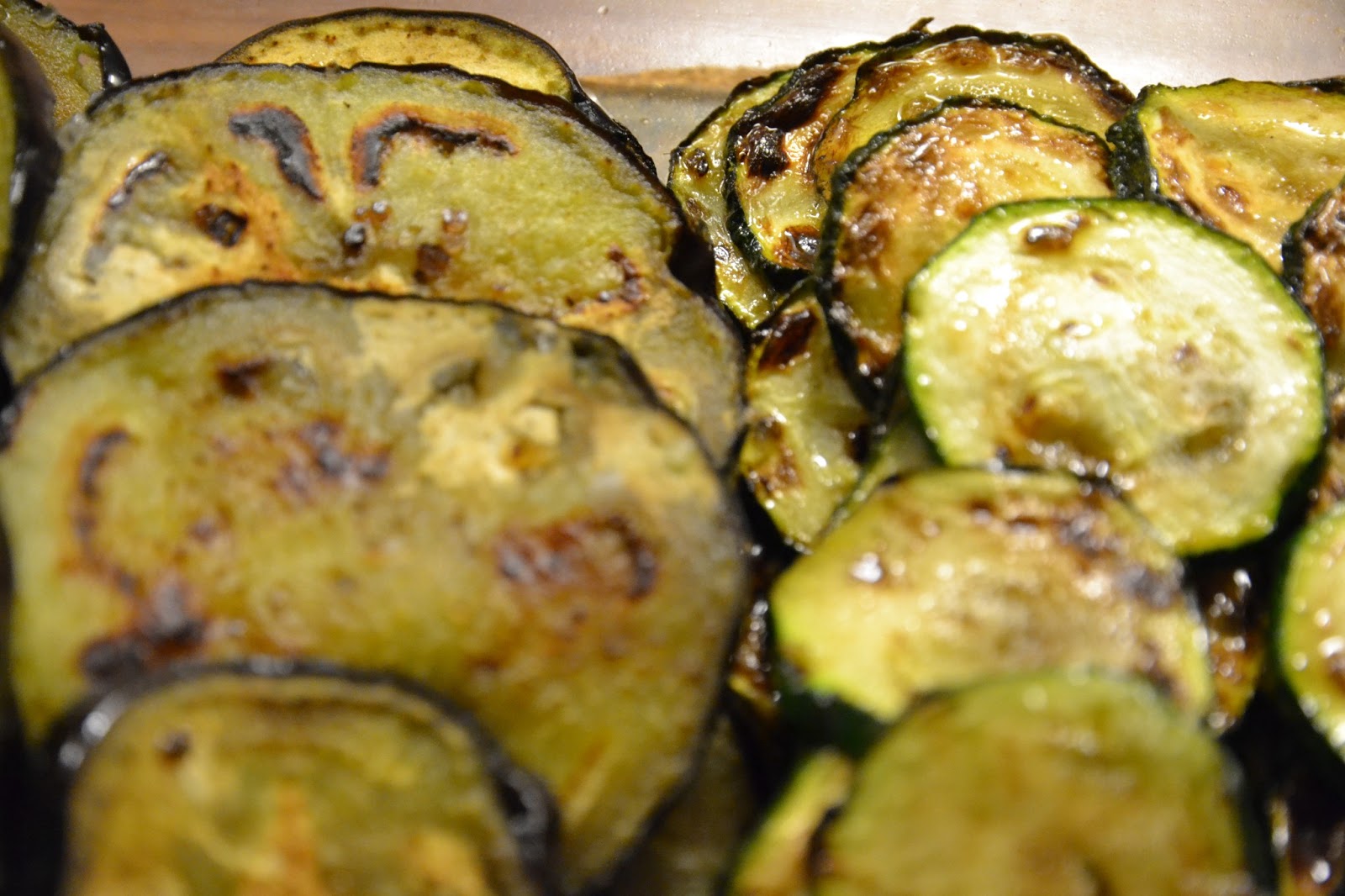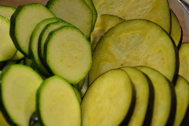 Lava bien y corta en rodajas finas el calabacín y la berenjena.