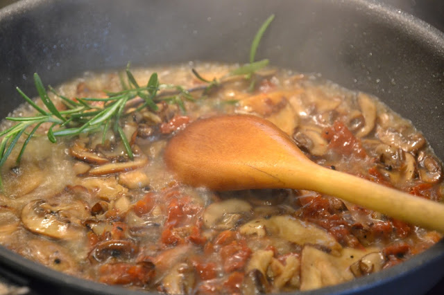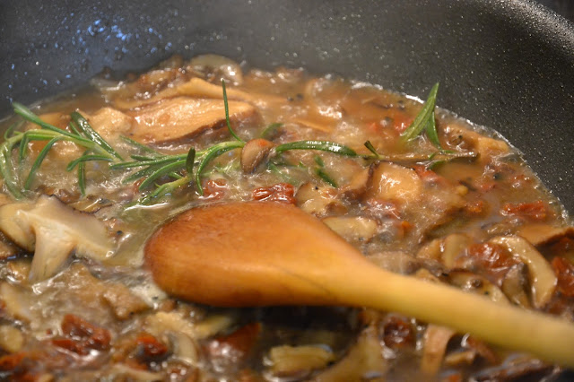Dales un par de vueltas y añade, escurridas, las setas secas ya hidratadas.