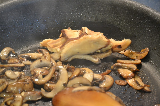 Retíralos a un plato y en la misma sartén pon el champiñón.