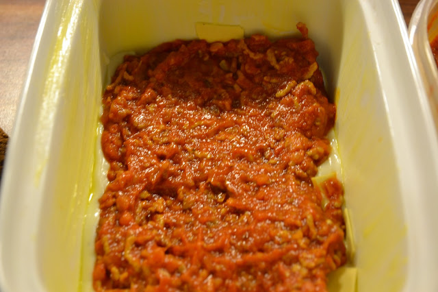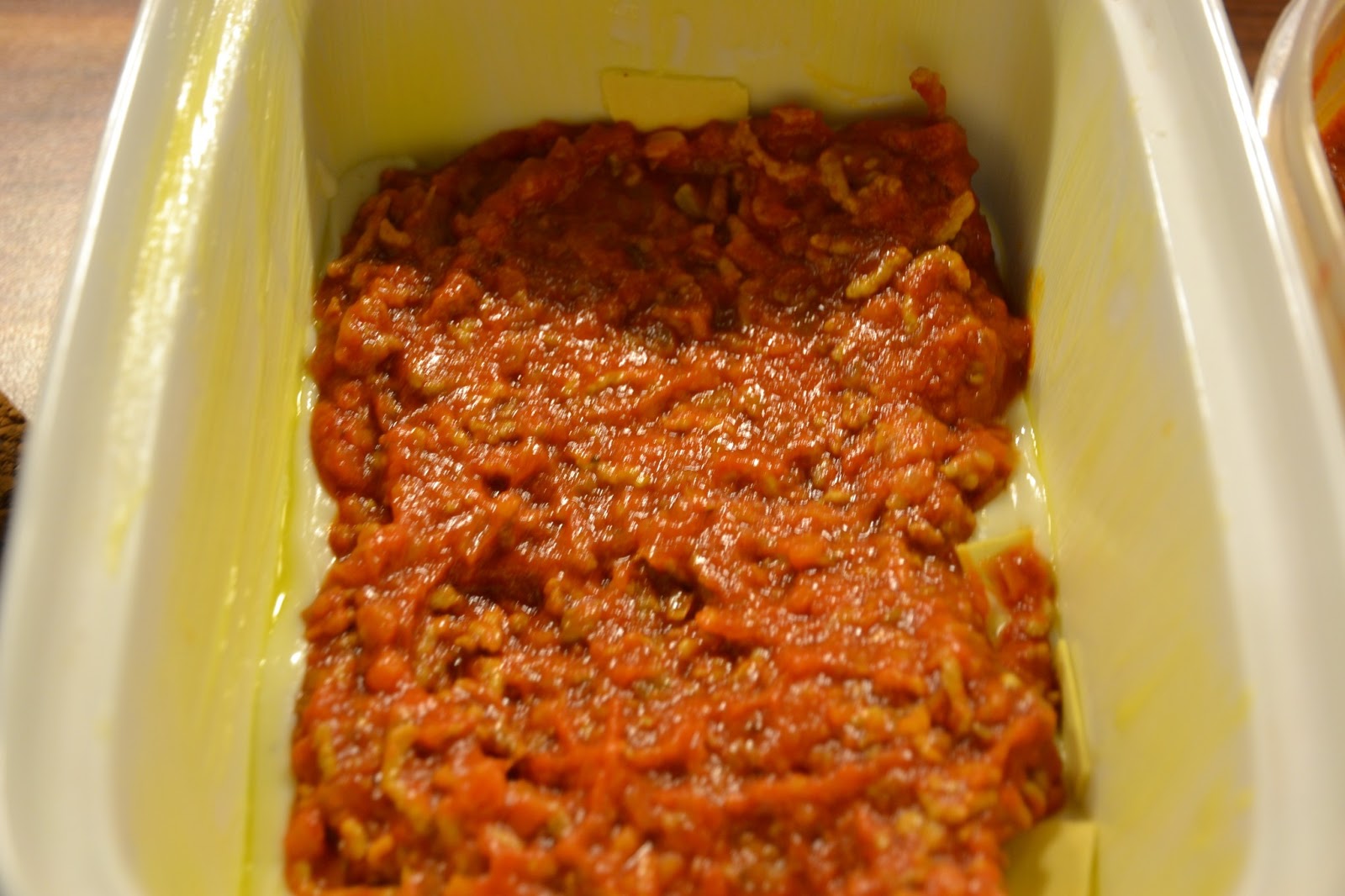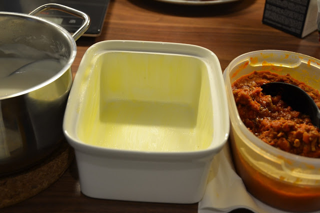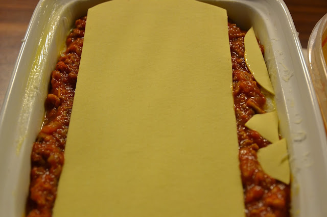 Al llegar al final pon boloñesa, lasagna y por último la bechamel.