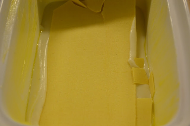 Unta la fuente con mantequilla. Precalienta el horno a 180º.