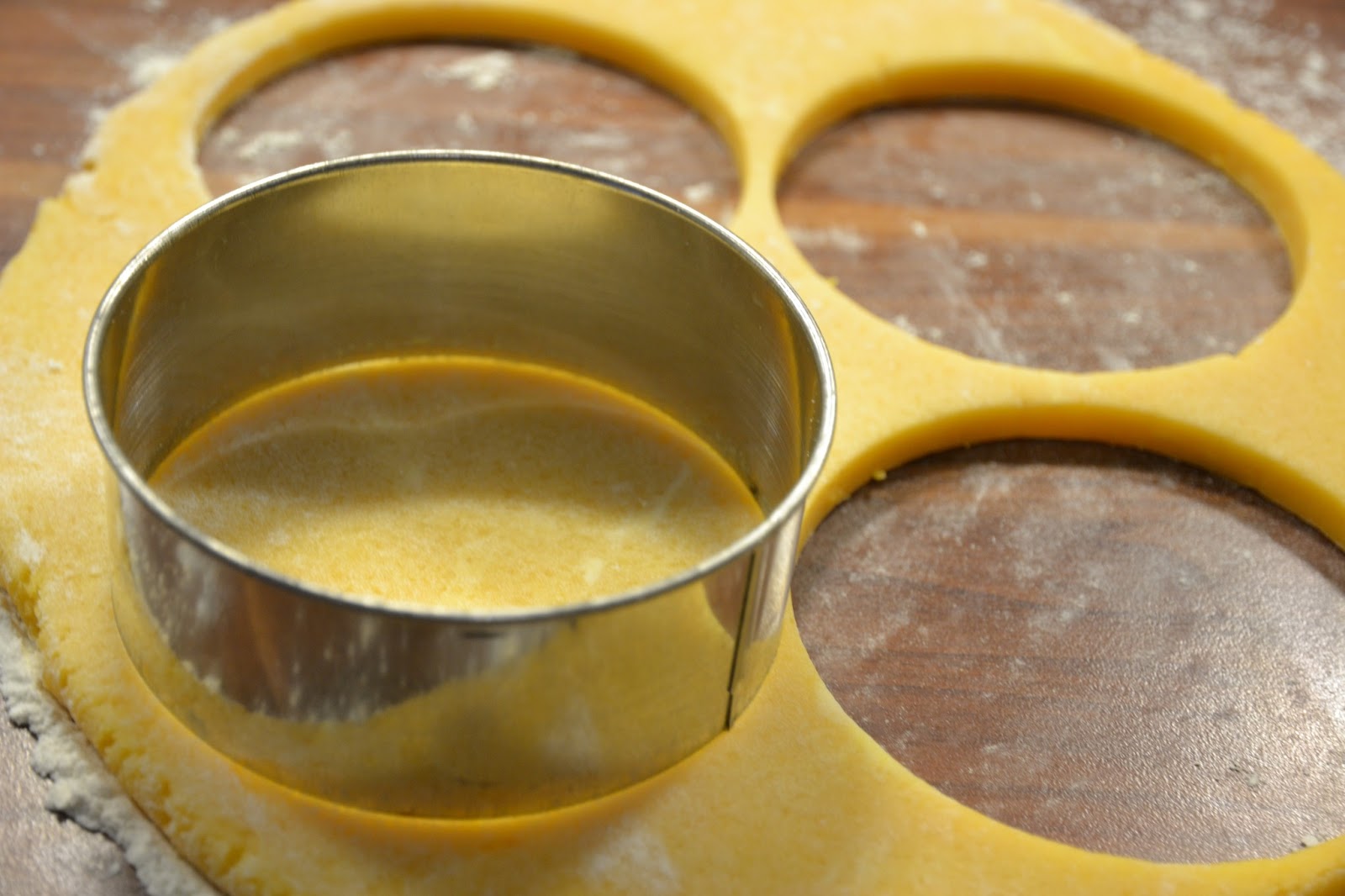 Corta con un cortapastas o un vaso grande (yo he usado de 10 cm. de diámetro).