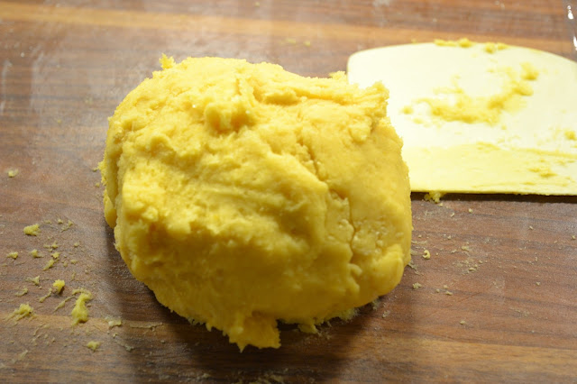 Mete las dos manos y recoge toda la masa en una bola, estará pegajosa, no te preocupes.