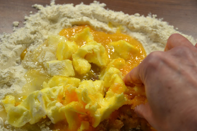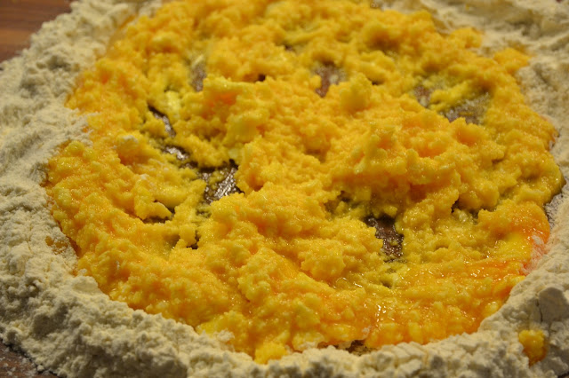 Pon en el centro el resto de los ingredientes menos el huevo para pintar.