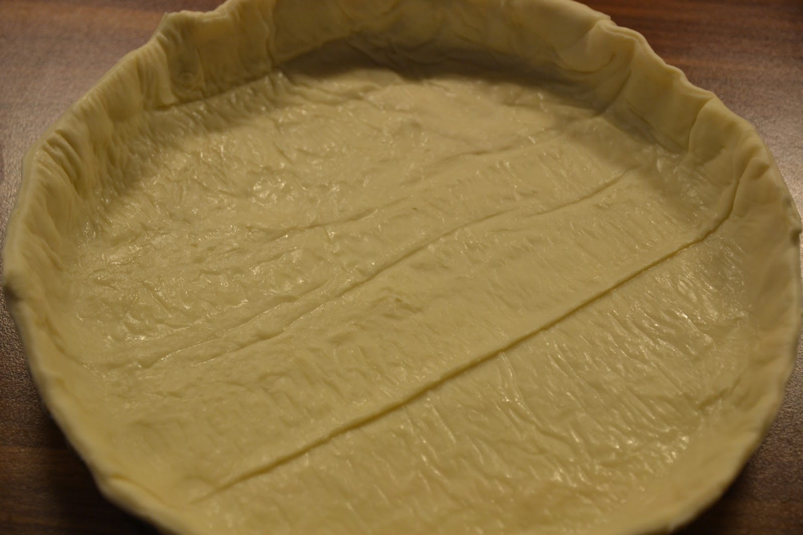 Extiende la masa en el molde y recorta los bordes. Enfríala en la nevera 1/2 hora. Precalienta el horno a 170º.