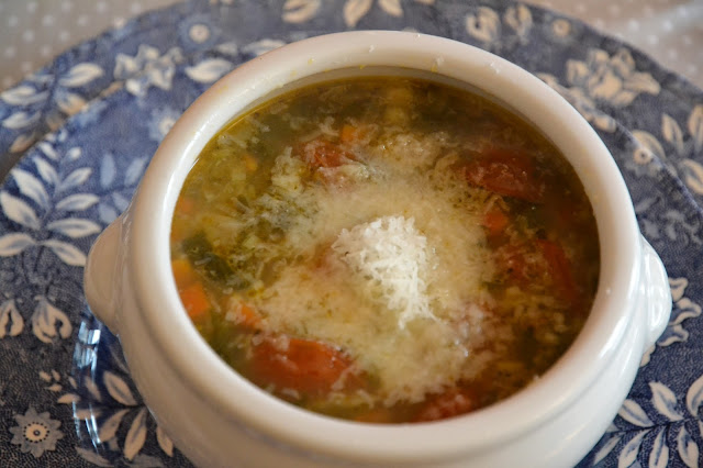 Cuando esté descongelada añade el tomate, las alubias, los guisantes y la albahaca.
