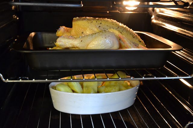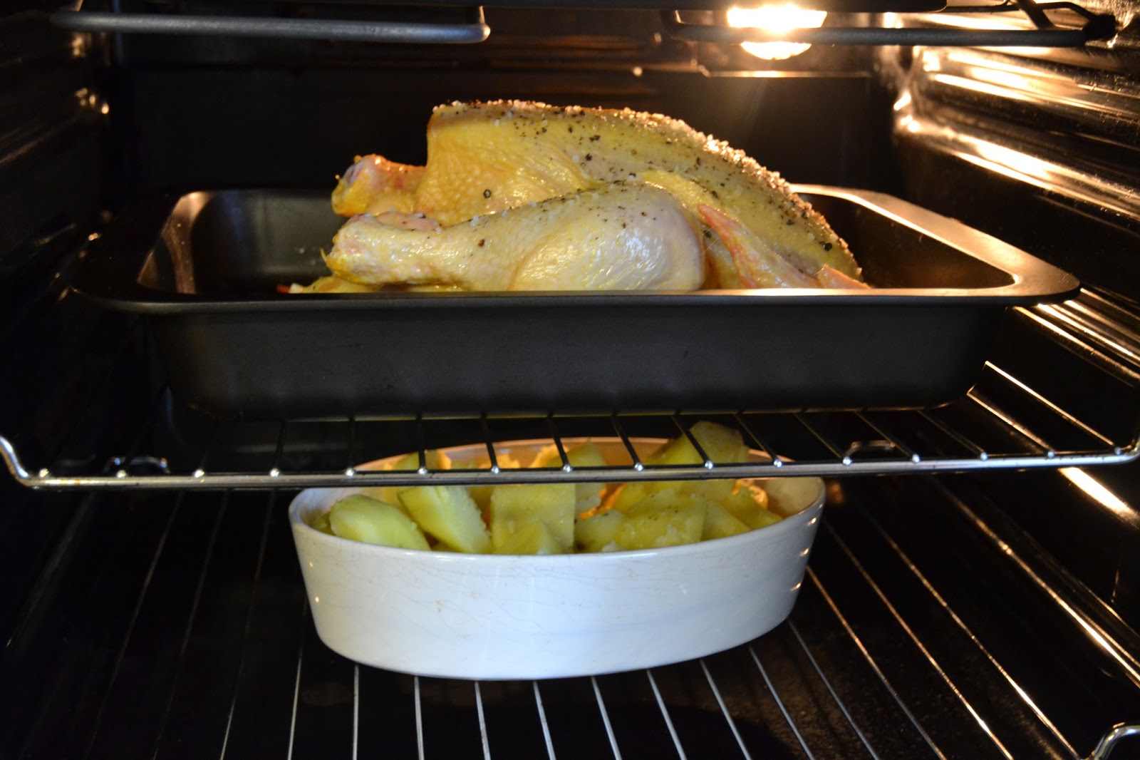 Pon en una fuente de horno, añade sal y pimienta y la grasa.