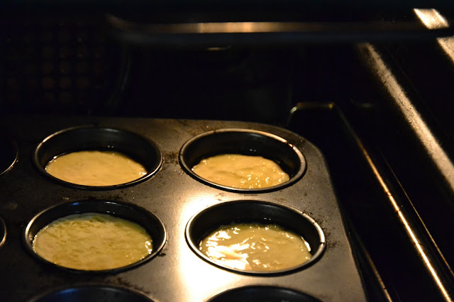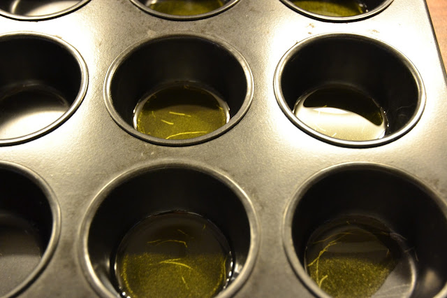 Pon en una bandeja de madalenas un chorrito de aceite en 5 huecos.