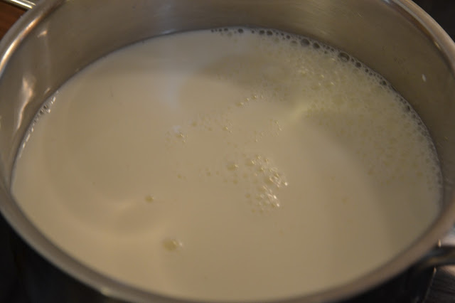 Pon a fuego medio la leche con el azúcar y la canela. Deja que hierva y retira del fuego.