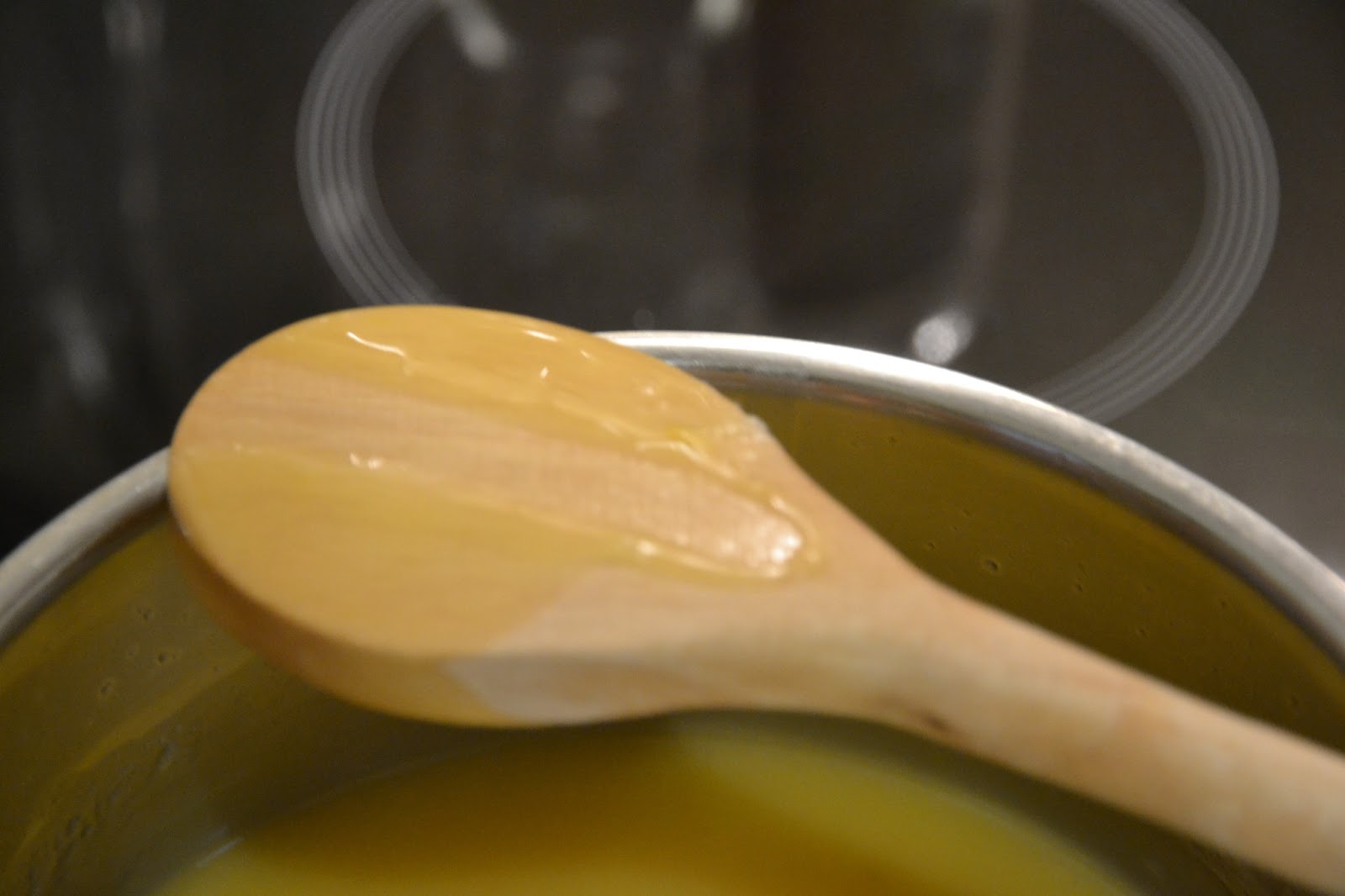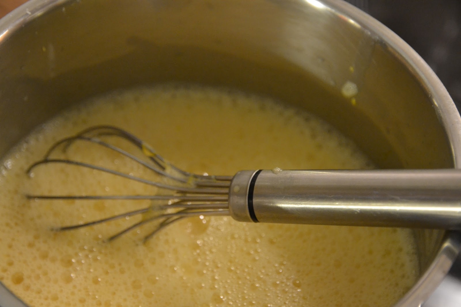 Vuelve a poner en el cazo y a fuego medio-bajo (NO PUEDE HERVIR). Si te resulta más cómodo lo puedes poner a baño maría. Si tienes cocina de inducción puedes hacerlo directamente, bajando el fuego aún más cuando vaya espesando.