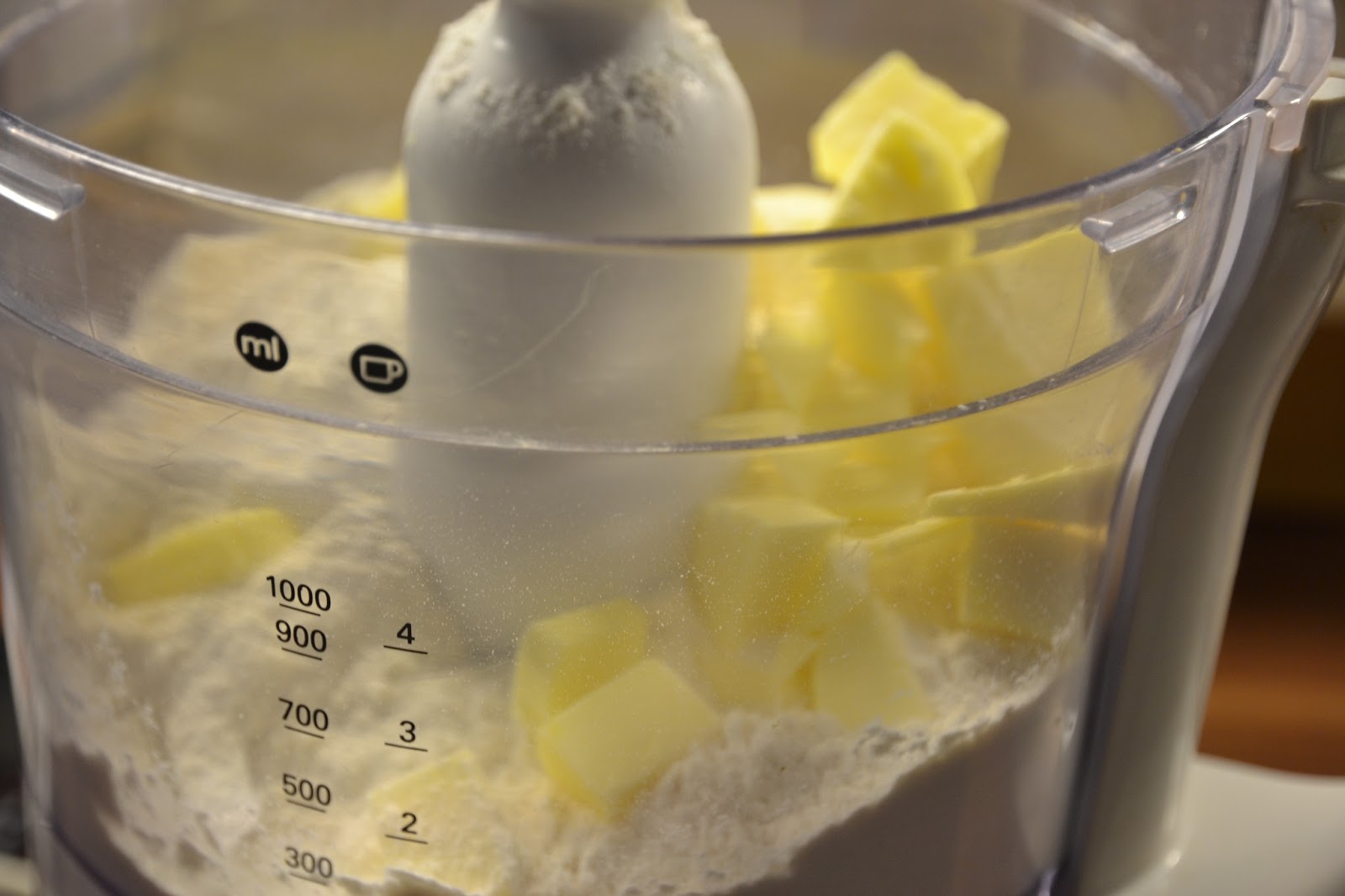 En un robot pon la harina y la mantequilla fría, y la sal.