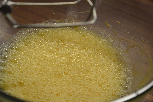 Bate las yemas con el azúcar hasta que cambia de color a más pálido.