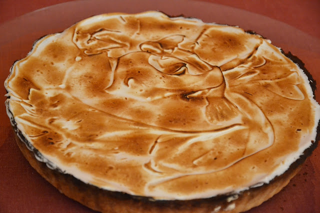 Extiende sobre la tarta llegando bien a los bordes y quema con un soplete.