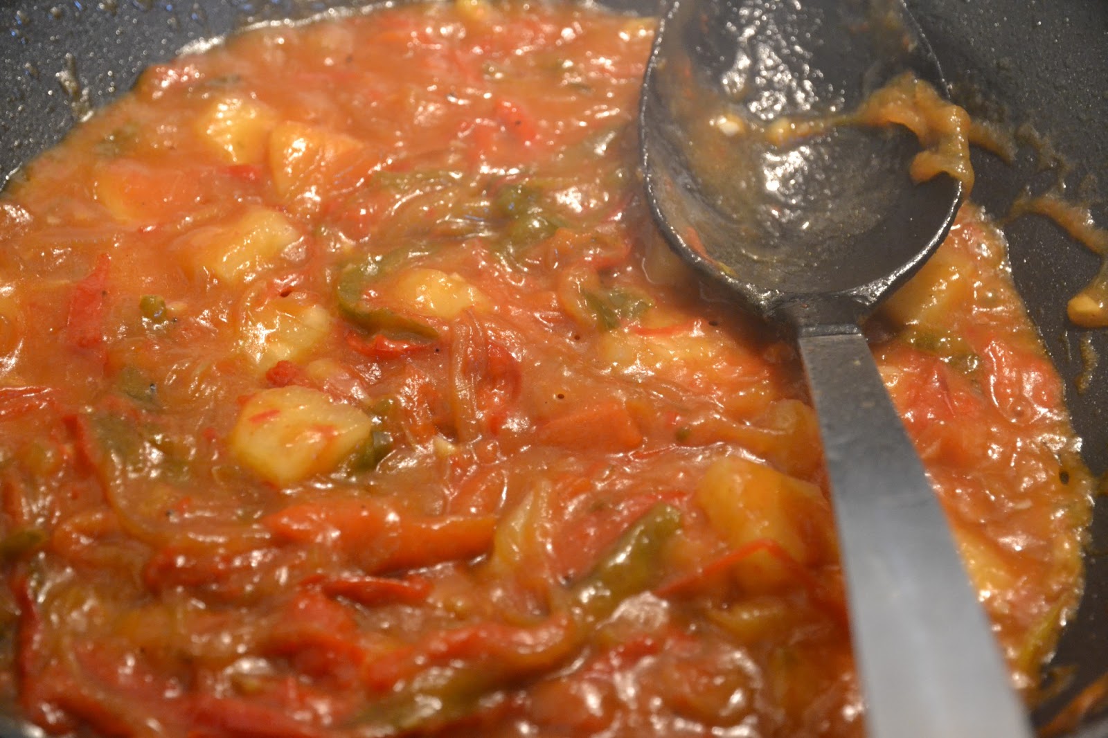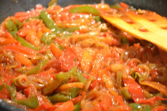 Deja que se hagan hasta que estén muy blandos. (yo hago esto para que el pimiento siente mejor, pero si te gusta más crudo no hace falta que lo hagas, lo puedes poner antes de poner el ajo y hacerlo menos).