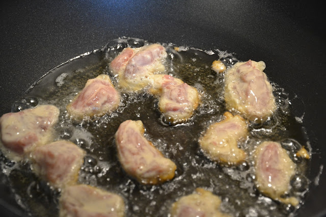 Pon una sartén con aceite a fuego medi-alto y fríe los trozos de carne hasta dorar.