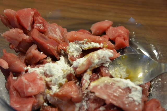 Pon la maizena, la soja y el vino con la carne, revuelve y deja marinar al menos 1/2 hora.