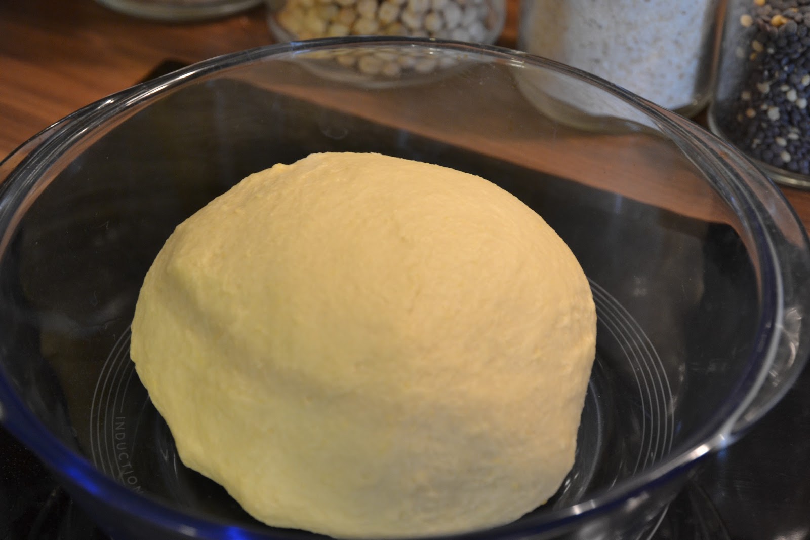 Añade los líquidos y sigue amasando hasta que se despegue del bol y coja elasticidad. (tarda unos 5 minutos en la máquina y por lo menos 10 amasado a mano).