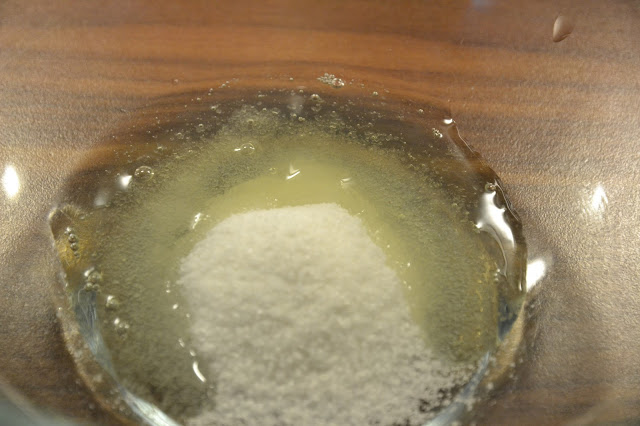 Para el merengue de café pon una clara con un tercio del azúcar y empieza a batir.