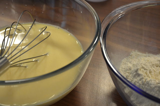 Pon todos los ingredientes menos la harina en un bol y bate con unas varillas.