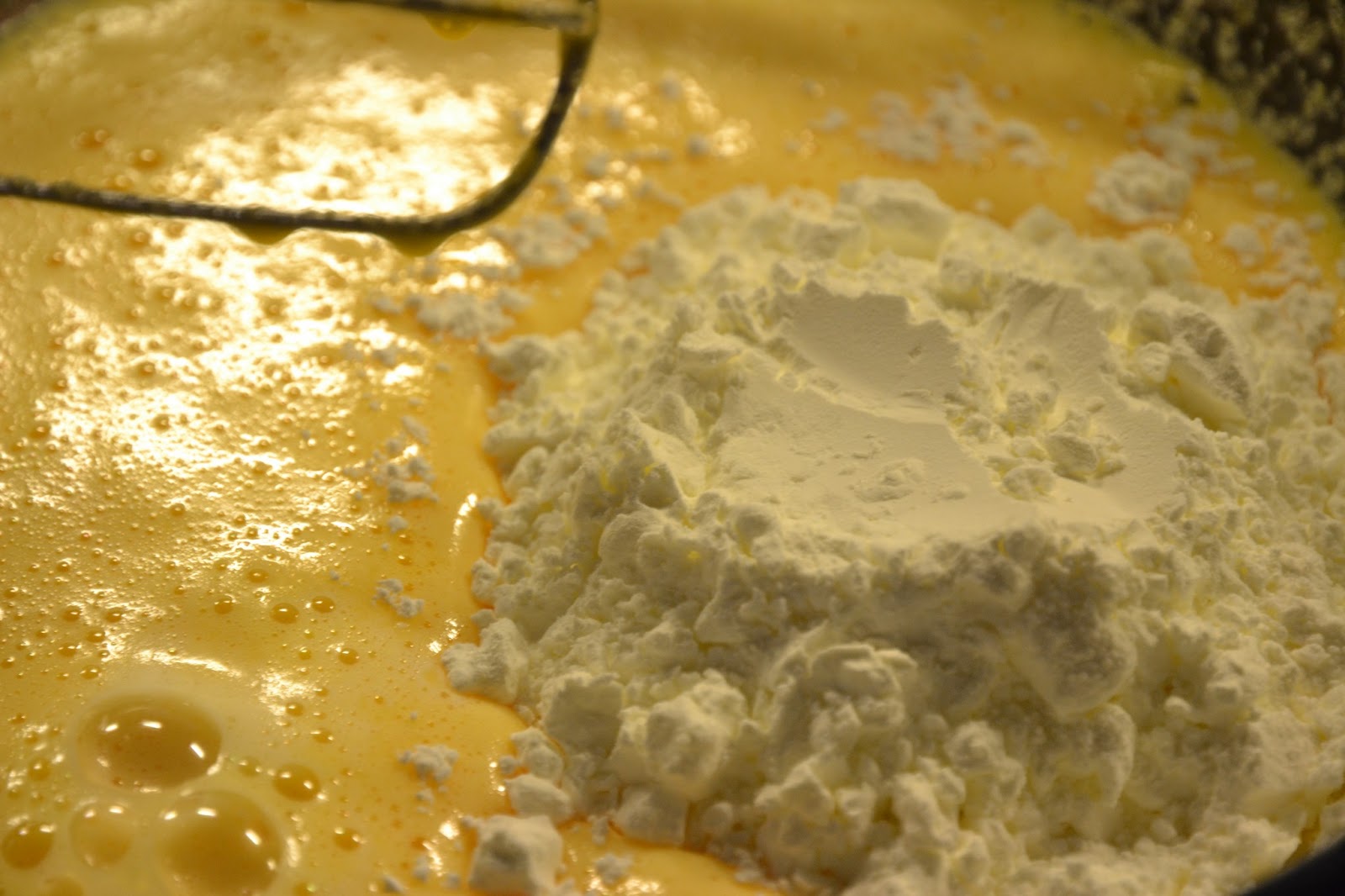 Bate bien las yemas y los huevos con el azúcar. Añade la maizena y el medio vaso de leche.