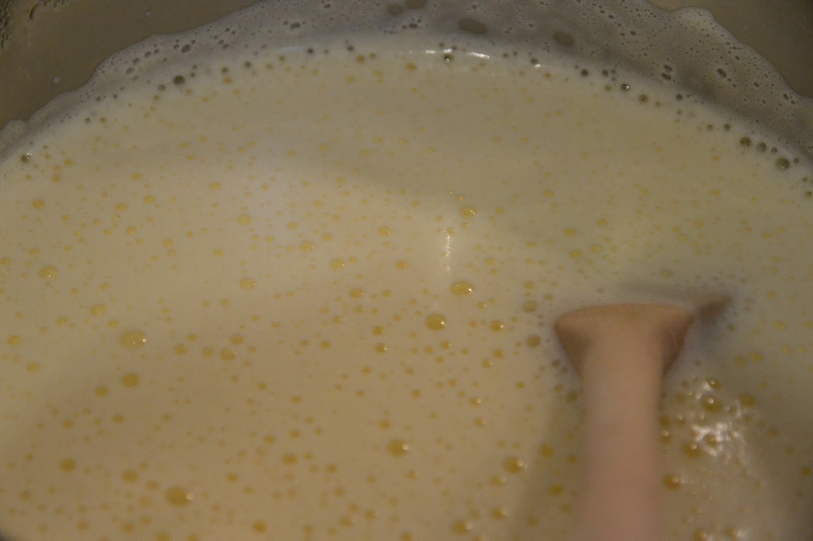 Vuelve a ponerlo al fuego y con una cuchara de palo mueve con fuerza para que no se pegue y no se hagan grumos.