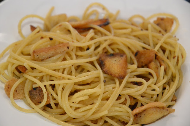 Escurre la pasta y mezcla con las anchoas y el pan.