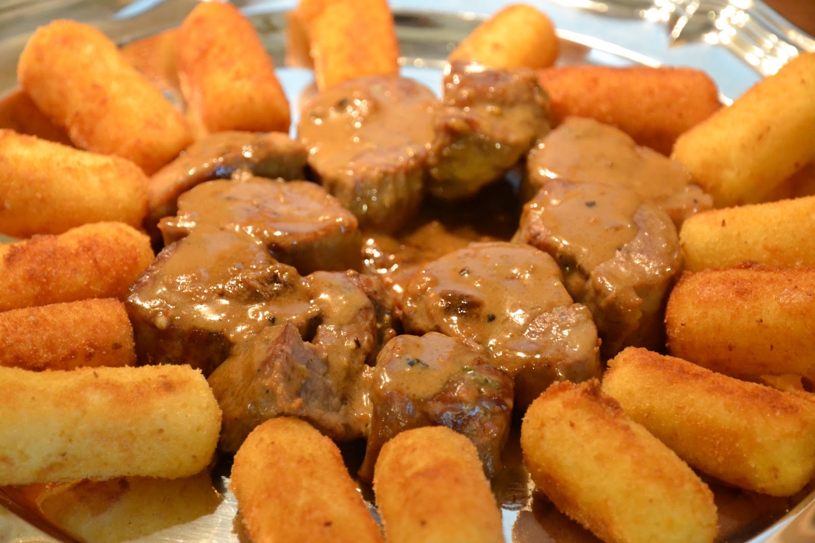 Cuando esté bien caliente añade la carne cortada en pequeños tournedós y bien salpimentados.