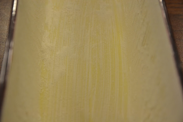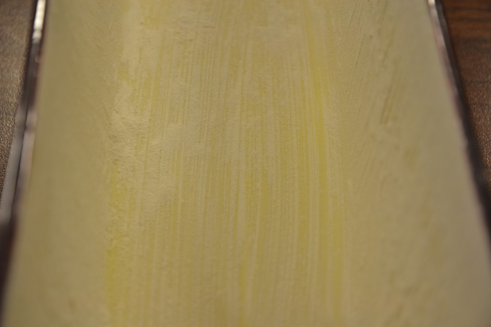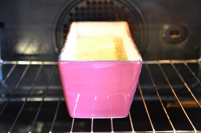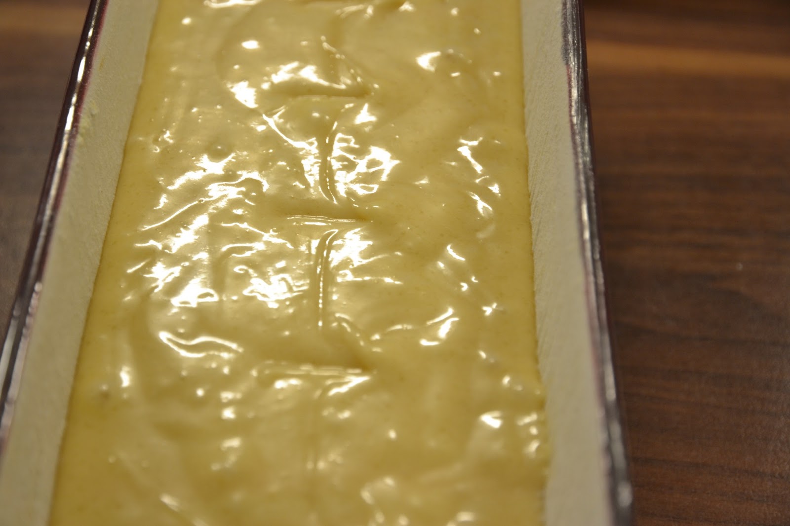 Pon el bizcocho en el molde. Con un cuchillo haz una ralla central y 4 ó 5 rayitas trasversales.