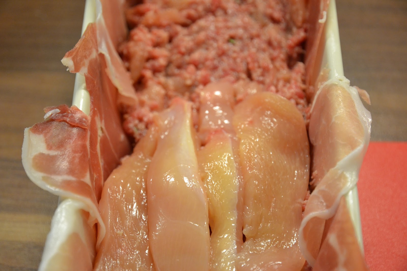Forra la terrina o molde con las lonchas de jamón serrano.